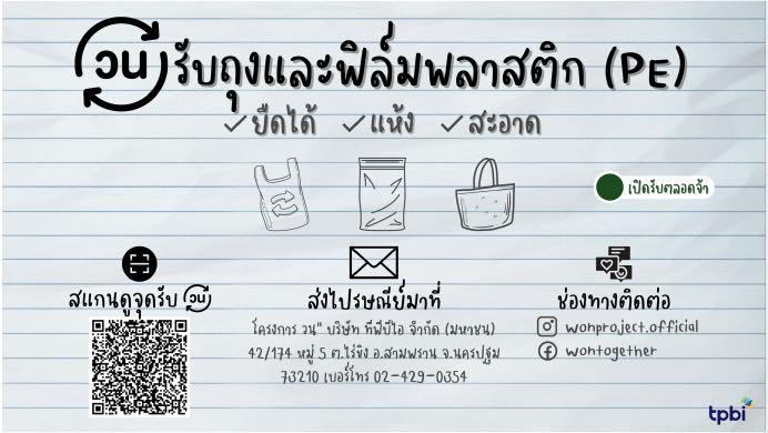 โครงการวน ได้นำเป้าหมายการพัฒนาที่ยั่งยืน หรือ Sustainable Development Goals (SDGs) ข้อที่ 12 เรื่องสร้างหลักประกันให้มีแบบแผนการผลิตและการบริโภคที่ยั่งยืน (Ensure sustainable consumption and production patterns) ข้อที่13 ปฏิบัติการอย่างเร่งด่วน เพื่อต่อสู้กับการเปลี่ยนแปลงสภาพภูมิอากาศและผลกระทบที่เกิดขึ้น (Take urgent action to combat climate) และหลักระบบเศรษฐกิจหมุนเวียนหรือ Circular Economy (CE) มาเป็นแกนกลางสำคัญที่จะผลักดันให้เกิดการใช้ทรัพยากรธรรมชาติอย่างคุ้มค่าและมีประสิทธิภาพมากที่สุด ตลอดจนเพิ่มศักยภาพในการจัดการกับของเสีย ให้เกิดการหมุนเวียนผ่านกระบวนการที่เหมาะสม สามารถนำกลับมาเป็นวัตถุดิบตั้งต้น ในระบบอุตสาหกรรมได้อีกครั้ง เรามีการประชาสัมพันธ์ในกลุ่มผู้คนที่ใส่ใจสิ่งแวดล้อมผ่านเฟสบุ๊คแฟนเพจ โดยใช้ชื่อว่า “Wontogether” เพื่อเสนอแนะแนวทางในการจัดการกับถุงและฟิล์มพลาสติกชนิดอ่อน ประเภท Poly Ethylene (PE) ที่แห้ง สะอาด สามารถทดสอบด้วยการใช้นิ้วโป้งดันที่พลาสติก หากว่าพลาสติกชิ้นนั้นสามารถยืดได้ สามารถส่งเข้าร่วมโครงการวนเพื่อนำไปรีไซเคิลได้ เช่น ถุงหูหิ้ว ถุงชอปปิ้ง ถุงน้ำแข็ง ฟิล์มห่อสินค้า (ทิชชู่ ผ้าอนามัย และผ้าอ้อมเด็ก) ฟิล์มหุ้มขวดน้ำ ฟิล์มหุ้มกล่องนม พลาสติกกันกระแทก ถุงขนมปัง ถุงน้ำตาลทราย ถุงผักและผลไม้ ซองไปรษณีย์พลาสติก ถุงซิปล็อก และซองยา เป็นต้น โดยพลาสติกที่ได้รับมาทุก 1 กิโลกรัม โครงการวนจะแปลงเป็นเงิน 5 บาท เพื่อนำไปบริจาคให้กับมูลนิธิเพื่อสิ่งแวดล้อม หรือสาธารณประโยชน์ อีกทั้งยังมีจุดรับบริจาคถุงพลาสติกตามพื้นที่ต่างๆ ให้ผู้บริโภคสามารถเก็บรวบรวมและส่งเข้ามารีไซเคิลกับโครงการ โครงการวน เป็นที่รู้จักและกล่าวถึงมากยิ่งขึ้นในแวดวงสิ่งแวดล้อม เกี่ยวกับการจัดการปัญหาขยะพลาสติก ทำให้โครงการเป็นทางเลือกและหนึ่งในทางออก ของการหันมาใส่ใจสิ่งแวดล้อม จากการคัดแยกขยะ ทั้งในครัวเรือน หน่วยงานหรือองค์กร เพื่อให้ขยะได้ถูกจัดการอย่างถูกต้อง