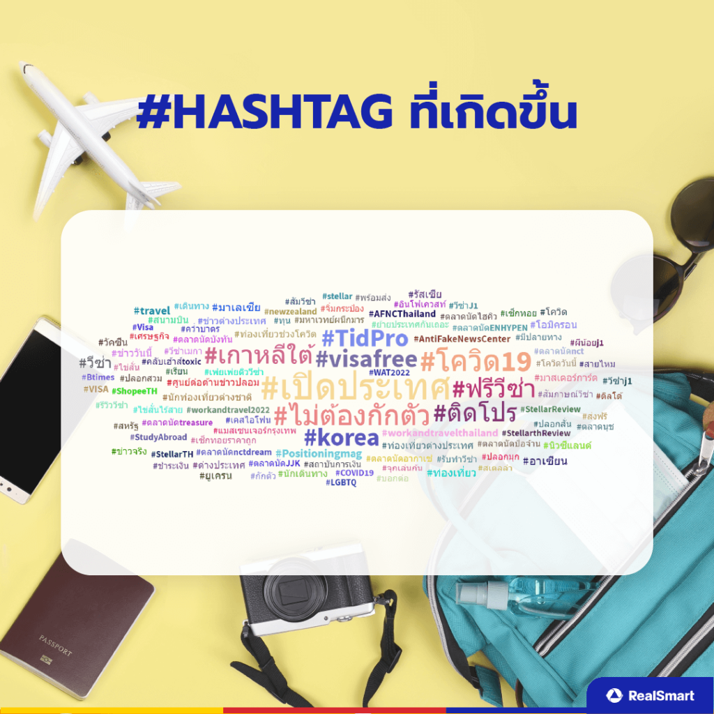 Top #Hashtag ที่เกิดขึ้นเกี่ยวกับประเทศที่เปิดให้ท่องเที่ยวได้แบบไม่ต้องกักตัว นั้นมีอยู่มากมายทั้งภาษาไทยและอังกฤษ แต่ที่เห็นได้ชัดเจนจะเป็น #เปิดประเทศ #เกาหลีใต้ #Visafree และอื่น ๆ หากใครสนใจสามารถไปตามดูใน Hashtag เกิดขึ้นได้เช่นกัน