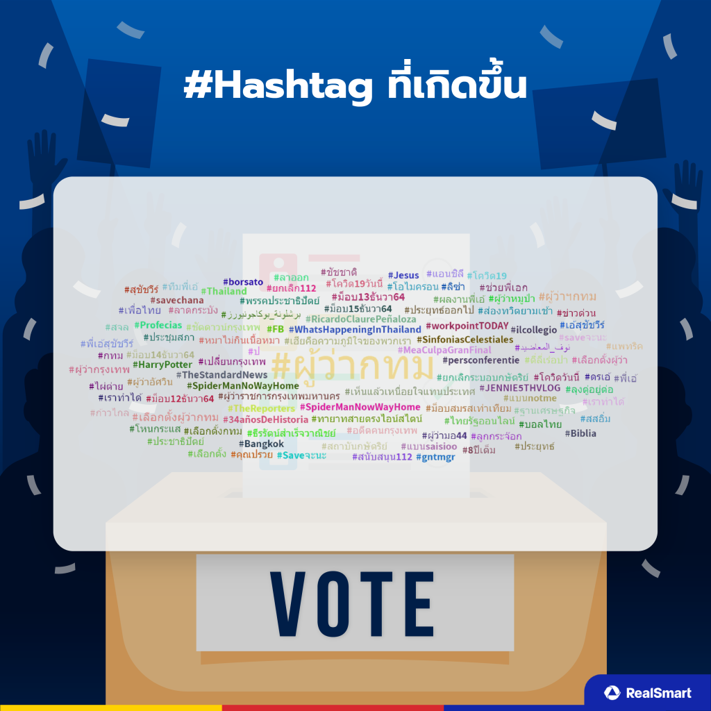 Top #Hashtag ที่เกิดขึ้นเกี่ยวกับกระแสการเลือกตั้งผู้ว่าราชการกรุงเทพมหานคร มีอยู่มากมาย แต่ที่เห็นได้ชัดเจนจะเป็น #ผู้ว่ากทม #เปลี่ยนกรุงเทพ #ผู้ว่าราชการกรุงเทพมหานคร และอื่น ๆ หากใครสนใจสามารถไปตามดูใน Hashtag เกิดขึ้นได้เช่นกัน