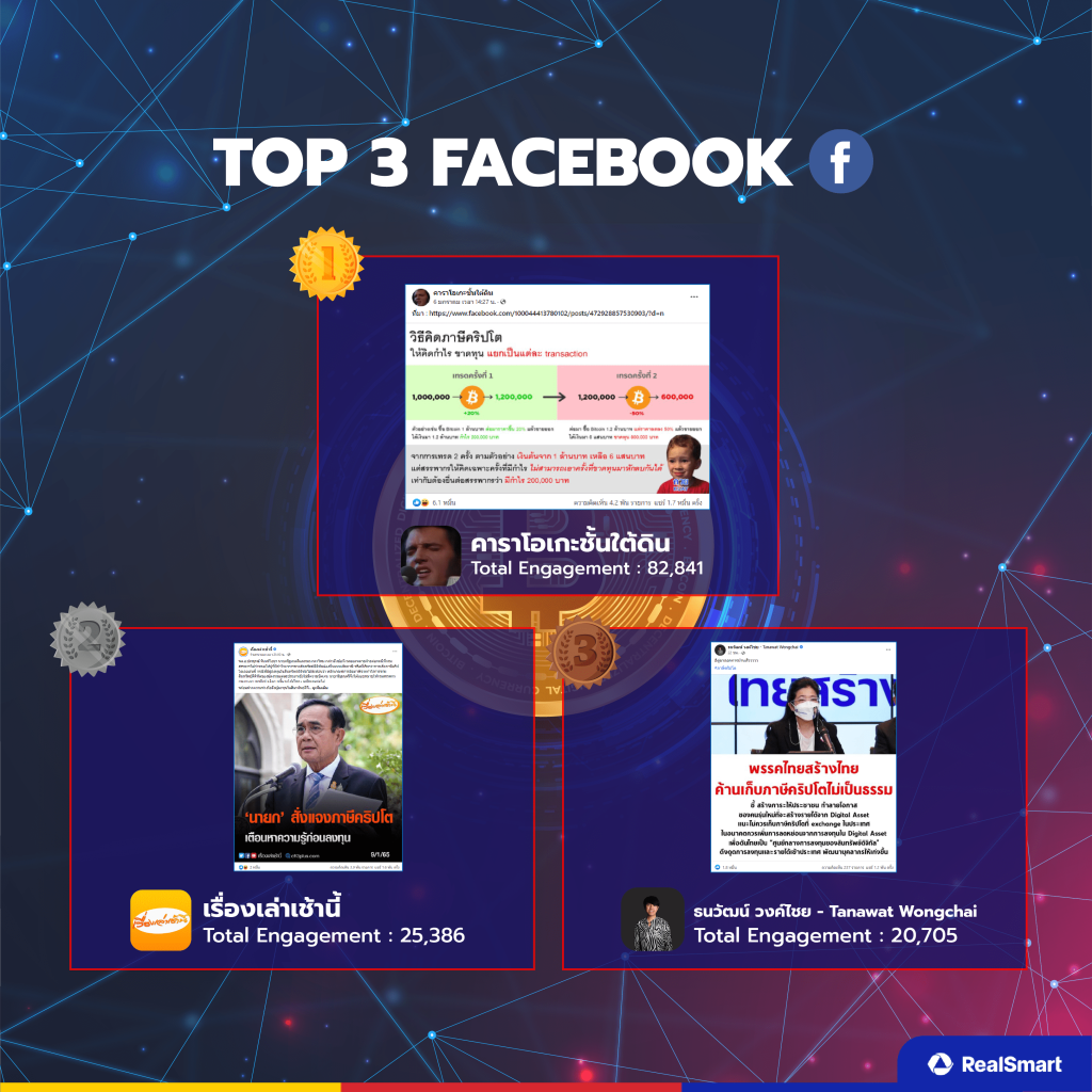 วันที่ 10 มกราคม 2565 Facebook page : Tanawat Wongchai โพสต์เกี่ยวกับที่พรรคไทยสร้างไทยนำโดยหัวหน้าพรรค คุณหญิงสุดารัตน์ เกยุราพันธุ์ หัวหน้าพรรคได้ออกมาค้านเรื่องการเก็บภาษีคริปโตไม่เป็นธรรม และในวันที่ 11 มกราคม 2565 Facebook page : ลองลงทุน โพสต์ถึงประเด็นที่ คุณหญิงสุดารัตน์ หัวหน้าพรรคไทยสร้างไทย ค้านเรื่องการเก็บภาษีและพร้อมหนุนไทยเป็นศูนย์กลางลงทุน Crpyto ของโลก