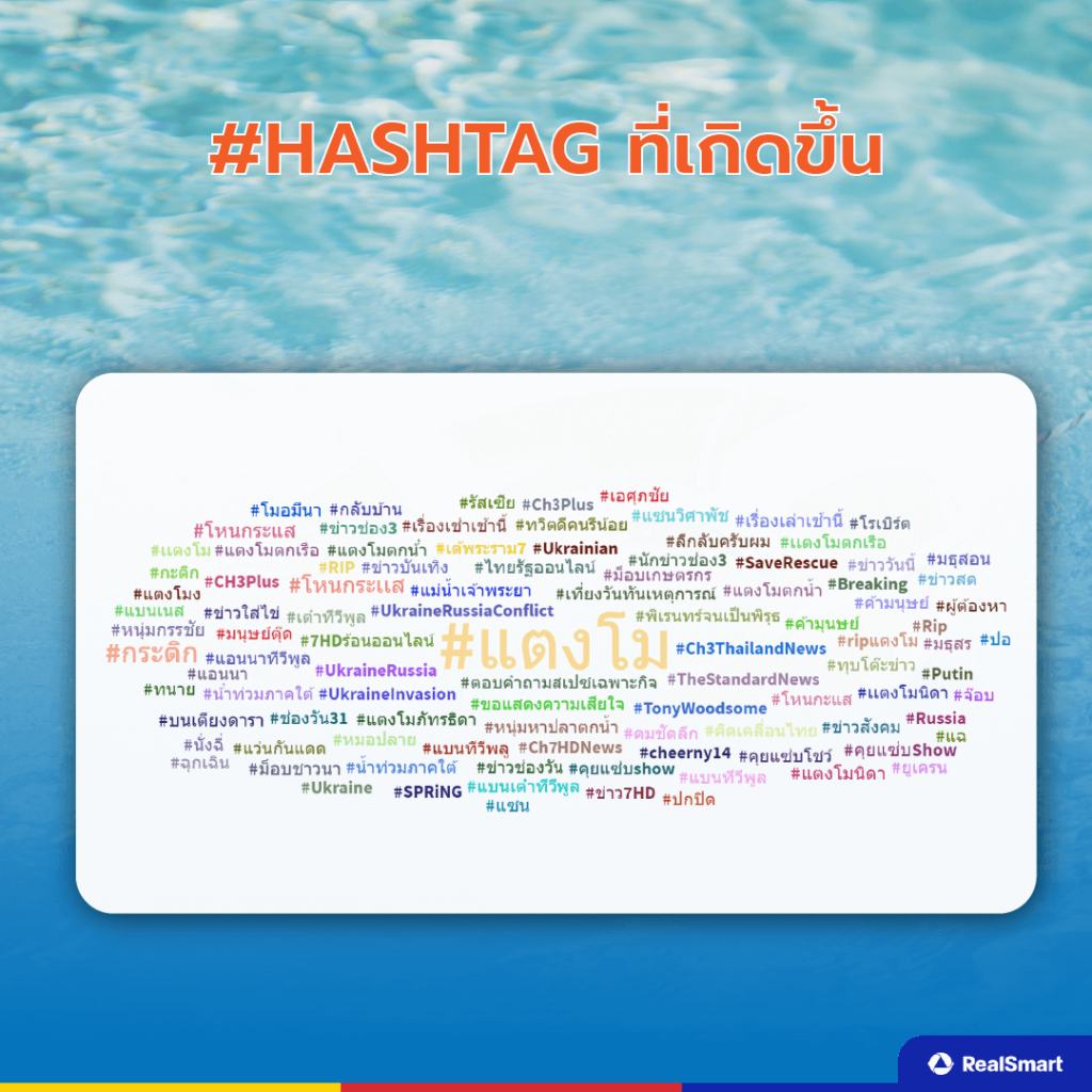 Top #Hashtag ที่เกิดขึ้นเกี่ยวกับจากเหตุการณ์ที่เกิดขึ้นของ “แตงโม”อยู่มากมาย แต่ที่เห็นได้ชัดเจนจะเป็น #แตงโม #โหนกระแส #แม่น้ำเจ้าพระยา และอื่น ๆ หากใครสนใจสามารถไปตามดูใน Hashtag เกิดขึ้นได้เช่นกัน