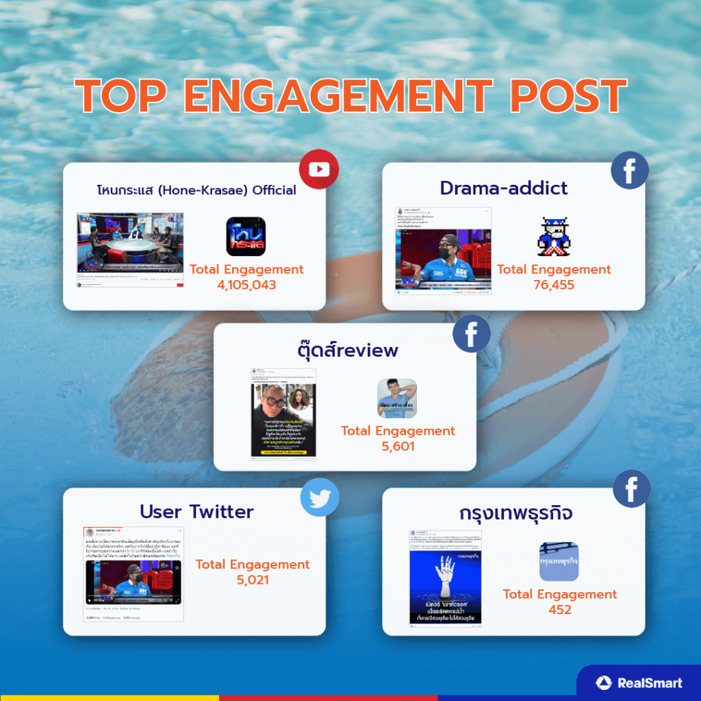 จากทั้งหมด 5 อันดับที่ได้รับความสนใจจากคนไทยสูงนั้น ไม่ใช่เรื่องแปลกเลย เพราะคนไทยจำนวนมากติดตามข่าวสารเรื่องนี้แทบจะตลอด 24 ชั่วโมงเลยก็ว่าได้ โดยเฉพาะอันดับที่ 1 เช่นรายการ “โหนกระแส” ที่ได้นำผู้ที่อยู่ในเหตุการณ์ เจ้าหน้าที่กู้ภัย คนที่มีส่วนร่วมในการค้นหาคุณ แตงโม มาสัมภาษณ์ในรายการทำให้คนไทยเข้าดู เข้าชมสูงกว่า 4 ล้านวิวใน YouTube