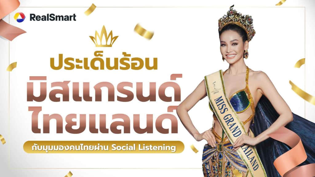RealSmart จึงได้รวบรวมข้อมูลในโลกออนไลน์ผ่าน Social Listening เกี่ยวกับประเด็นมิสแกรนด์ไทยแลนด์ ในส่วนของมุมมอง ความคิดเห็น ความรู้สึกของคนไทยในโลกออนไลน์แบบละเอียด และนำมาเล่าให้ทุกคนได้เข้าใจกัน