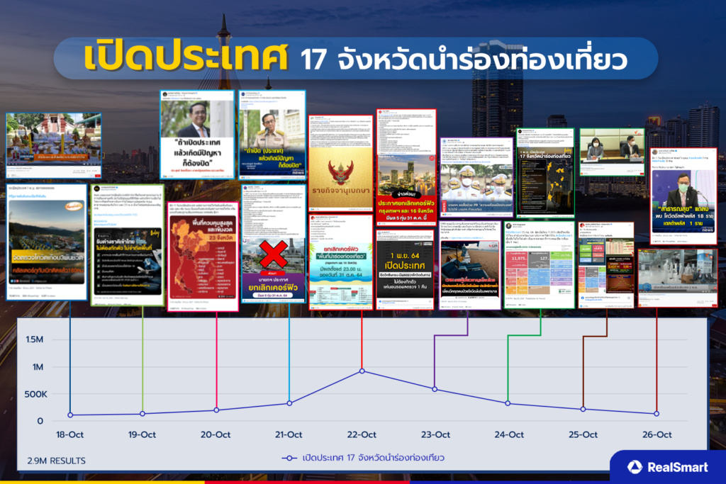 ประเด็นการเปิดประเทศและ 17 จังหวัดนำร่องท่องเที่ยวมีการพูดถึงในช่องทางไหนบ้างละ
