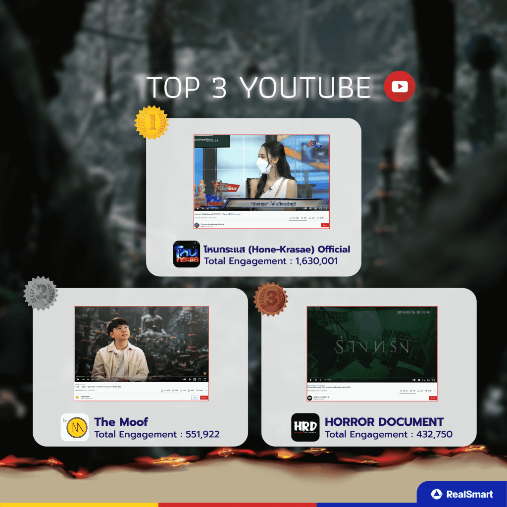 ในส่วนของ YouTube 3 channel นี้เป็นที่รู้จักในสังคมออนไลน์ โดยเฉพาะ โหนกระแส(Hone-Krasae) เมื่อไหร่ที่อะไรเป็นกระแสทั้งในด้านที่ดีและไม่ดีมักจะนำมาเข้ารายการนี้เสมอ ส่วนอีก 2 channel อย่าง The Moof และ Horror Document  ทำคอนเทนต์เกี่ยวกับภาพยนตร์อยู่แล้วจึงได้รับ Engagement สูง
