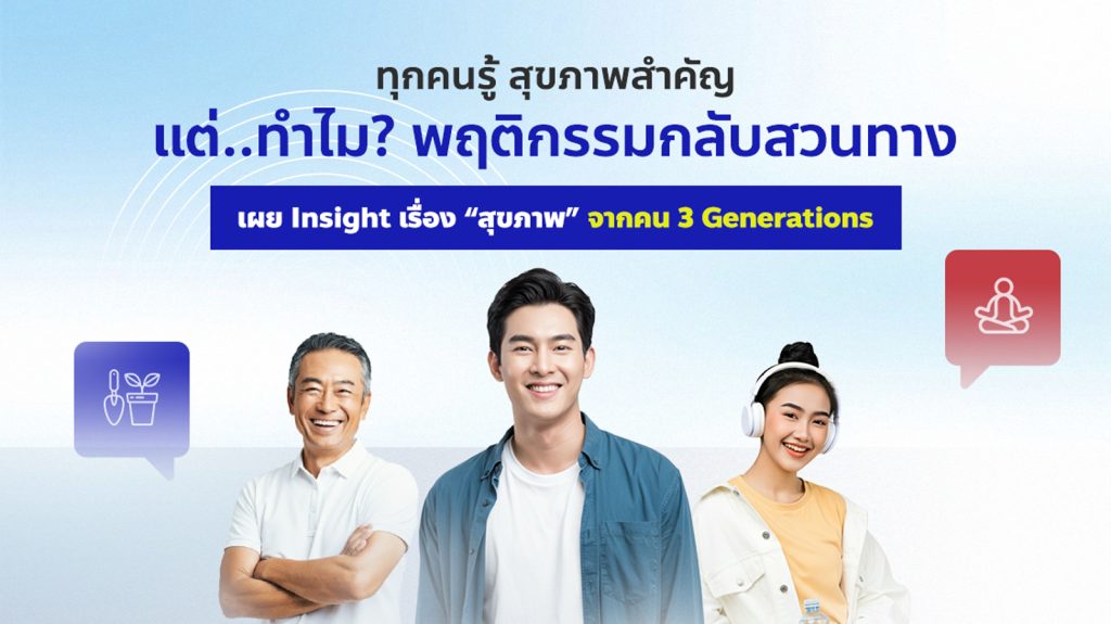 อย่างไรก็ตาม แม้คนส่วนใหญ่จะมีแนวคิดรักสุขภาพเหมือนกัน แต่! การตีความ หรือวิธีการในการดูแลสุขภาพของคนแต่ละ Generation กลับแตกต่างตามช่วงอายุ ประสบการณ์ และวิถีชีวิต ถ้าลองวิเคราะห์ข้อมูลเพิ่มเติม จากการรวบรวมข้อมูล Offline ทำให้เห็นภาพรวมอินไซด์ เรื่องสุขภาพ และเข้าใจวิถีชีวิตของคนแต่ละช่วงวัยได้มากยิ่งขึ้น