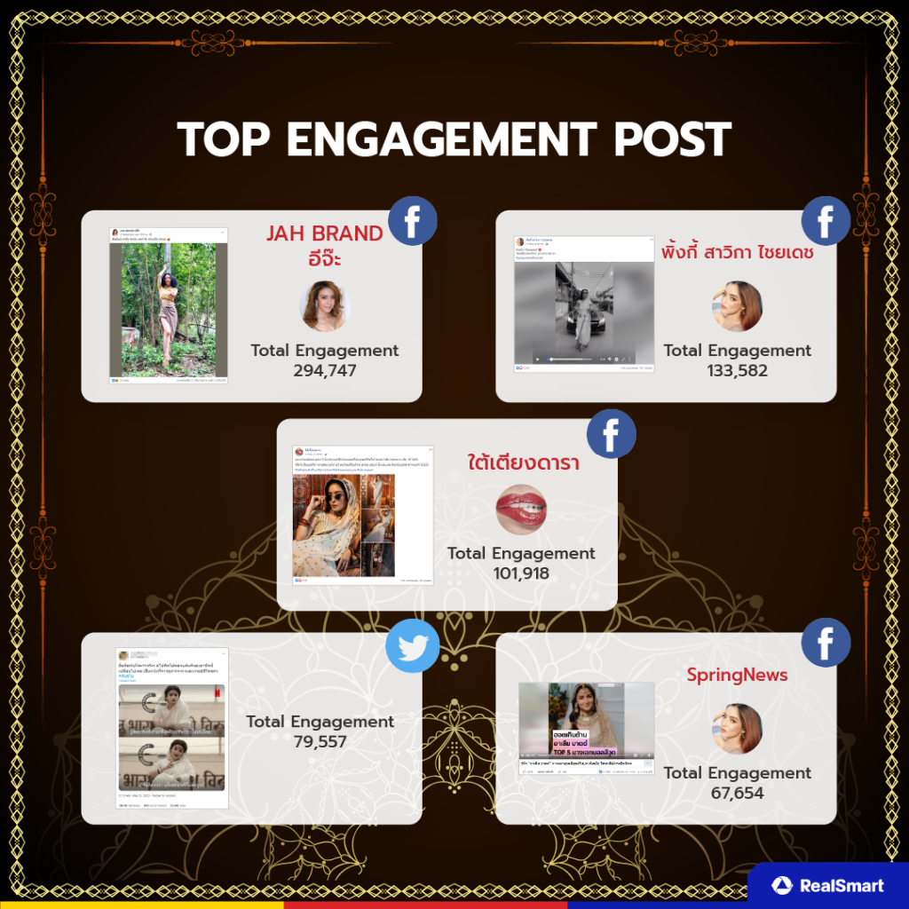 โดย Top Engagement Post เกี่ยวกับภาพยนตร์คังคุไบจะพบว่าเป็นช่องทาง Facebook ที่ยังคงช่องทางหลักในการพูดถึงเรื่องราว หรือเหตุการณ์ต่าง ๆ ที่เกิดขึ้น และ Twitter เป็นอีกช่องทางที่ได้รับความสนใจพอสมควร