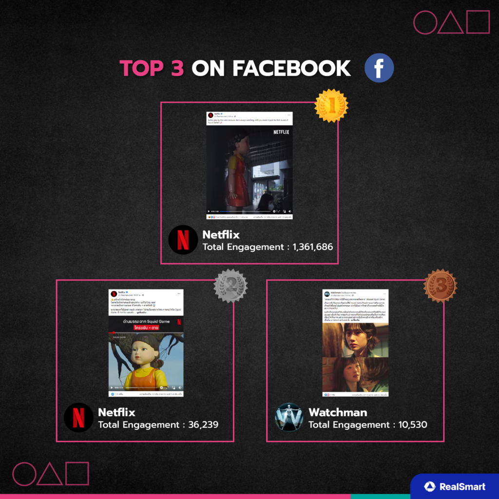 วันที่ 22 – 27 กันยายน 2564 กระแสของ Squid Game เริ่มพุ่งสูงขึ้นมากเรื่อยๆ จนขึ้นซีรีส์อันดับ 1 ของโลก หลายเพจFacebook ออกมารีวิว แนะนำ และโปรโมท ทำให้มีข้อความที่เกี่ยวข้องเฉลี่ยแล้ว 1.5 – 2 ล้าน Engagement