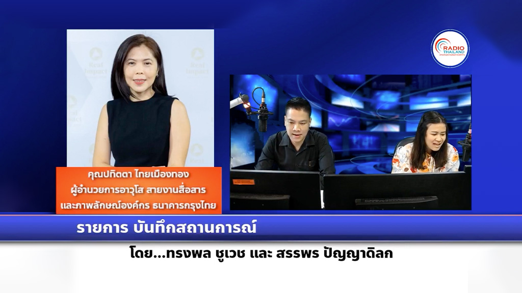 คุณปทิตตา ไทยเมืองทอง ผู้อำนวยการอาวุโส สายงานสื่อสารและภาพลักษณ์องค์กร บมจ.ธนาคารกรุงไทย ได้ให้สัมภาษณ์ทางโทรศัพท์ในรายการ “บันทึกสถานการณ์” ออกอากาศทางสถานีวิทยุกระจายเสียงแห่งประเทศไทย เพื่อบอกเล่าเรื่องราว แนวคิด การดำเนินงาน ตามแนวทางสู่ความยั่งยืน ในฐานะที่เป็นองค์กรด้านการเงินเปรียบเสมือนพลังภายใต้ที่ช่วยส่งเสริมและสนับสนุนให้ชุมชน สังคมสามารถขับเคลื่อนและพัฒนาไปข้างหน้าได้ไม่สิ้นสุด